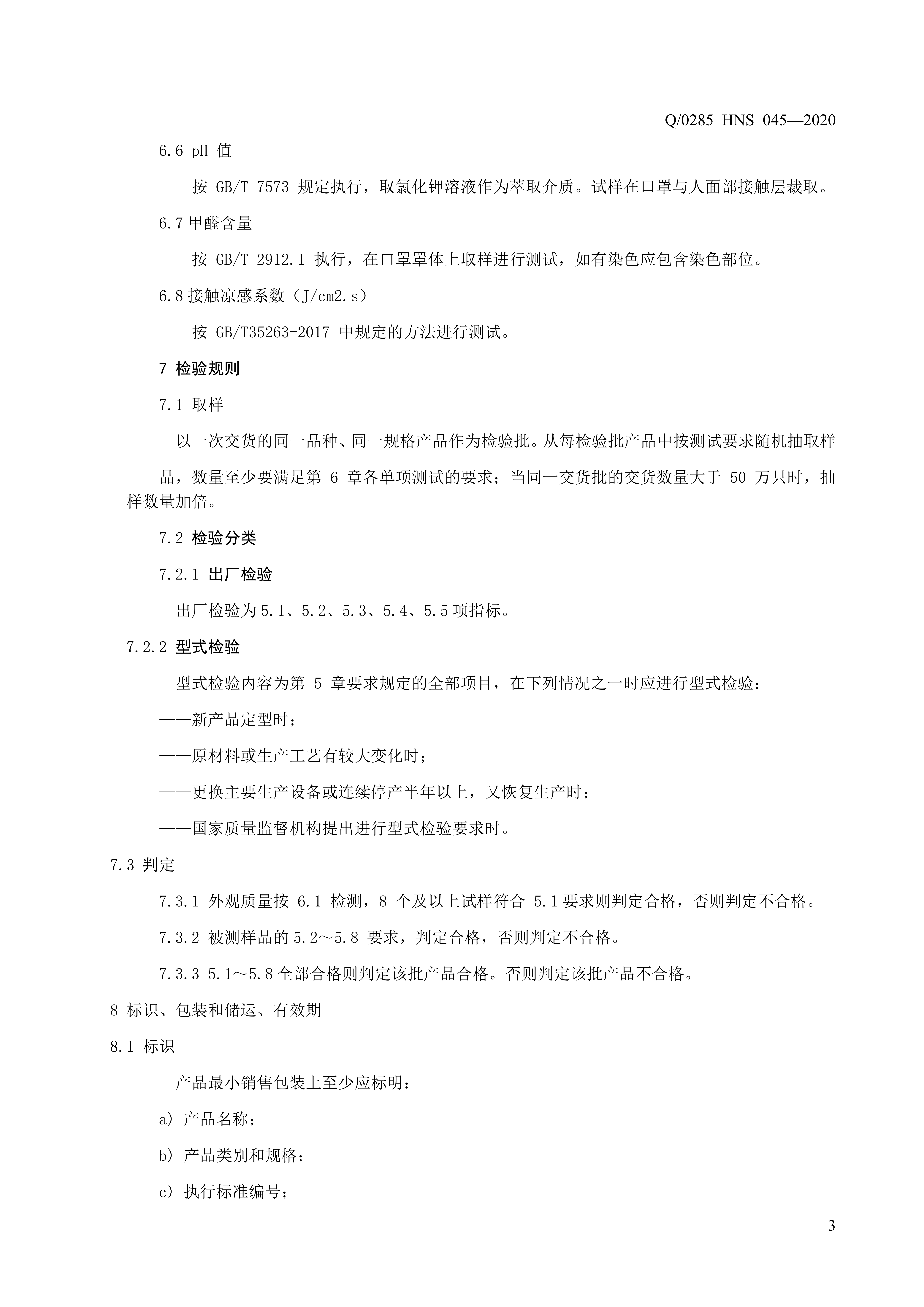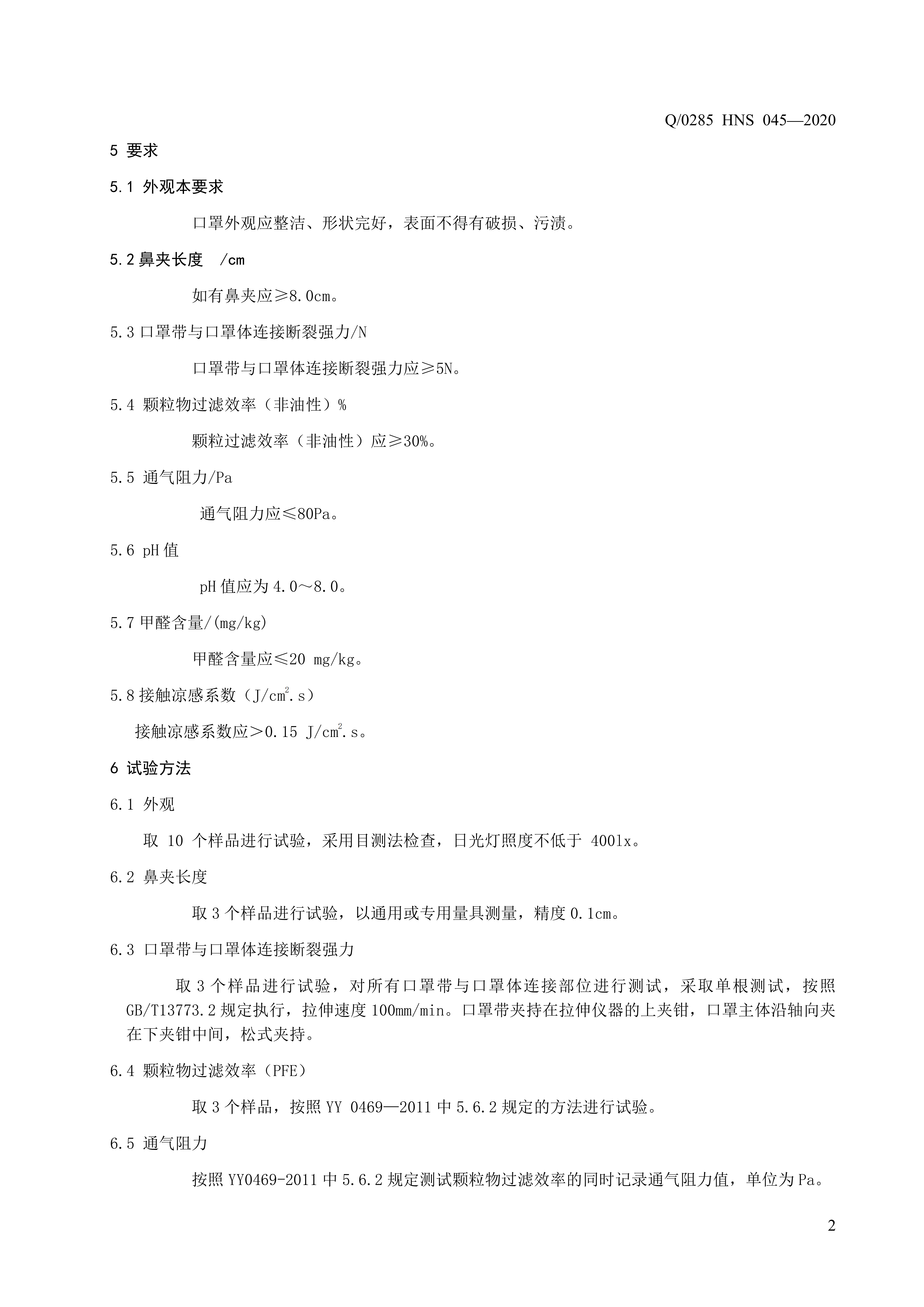 青岛海诺生物工程有限公司企业标准 — 薄荷清凉口罩